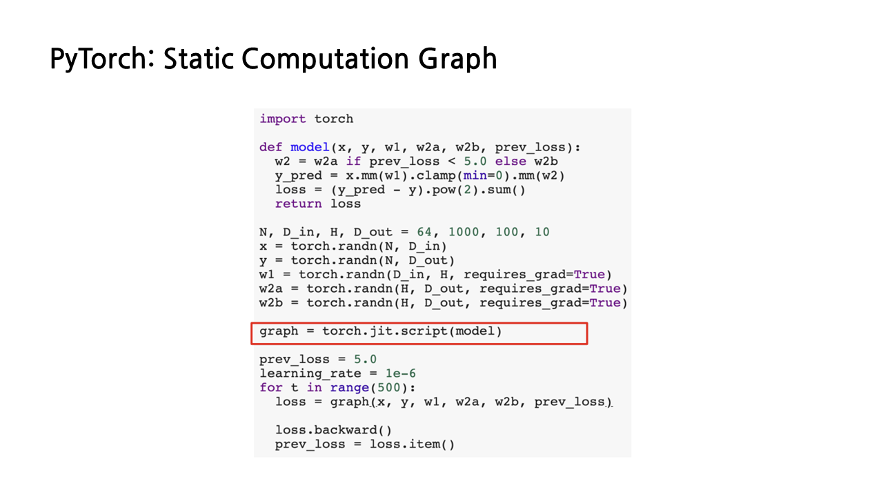 - JIT을 통한 static graph 생성도 가능하다.