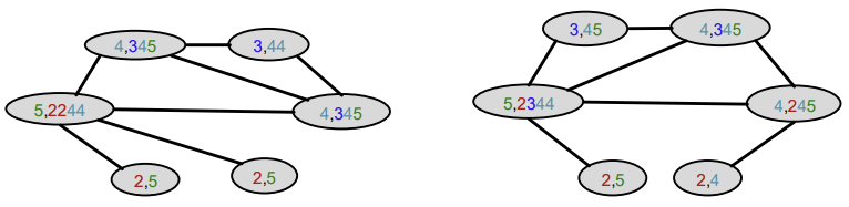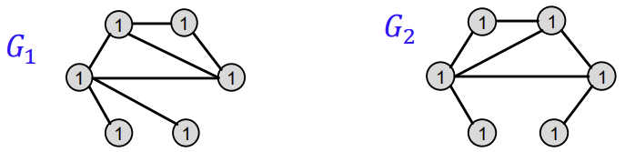 구체적인 예시는 아래에서 확인할 수 있다. 비슷하지만 조금 다른 형태의 그래프 G, G'이 들어왔을 때 color refinement 연산을 적용하는 예이다.